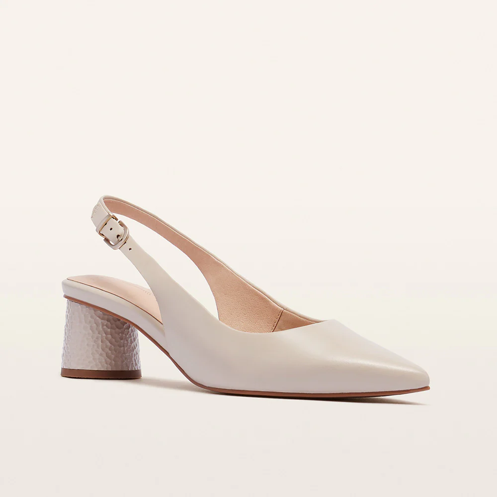 Embrace understated elegance with Juno in Ecru, a mid-height slingback heel that pairs beautifully with every wardrobe. Featuring a refined pointed toe and textured heel detailing, Juno brings polish to every occasion. Built on our podiatrist-designed LuxaLite®  footbed, it delivers slimline underfoot cushioning and targeted arch support for all-day comfort. With its sleek silhouette and secure slingback strap, it’s the heel that lets you dress up without the downside.